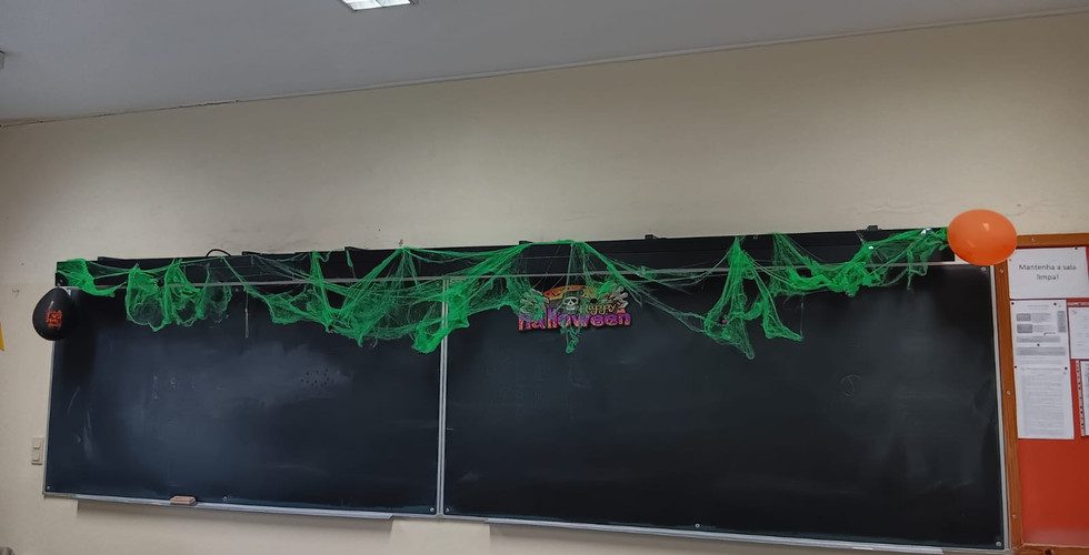 Foram muitas as decorações assustadoras espalhadas pelos espaços comuns da escola, houve também uma animação Scratch elaborada pelo aluno Rogério Garcia do 9ºG, disponível nos computadores da biblioteca para todos verem, assim como um Halloween Escape Room elaborado pela professora Isabel Morim.
