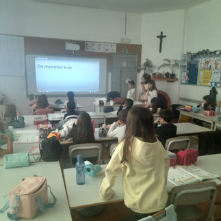 Após a leitura, os alunos envolveram-se numa reflexão sobre como se vivia antes do 25 de abril, no tempo da ditadura. Partilharam os conhecimentos que tinham na sua bagagem e cresceram na aprendizagem, uns com os outros.