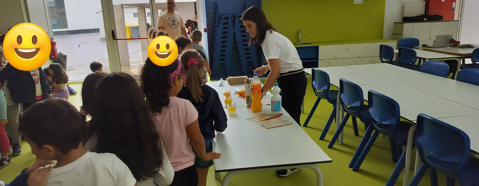 Não, não houve distribuição de gomas, houve sim um momento experimental onde todos os alunos, do 1º ao 4º ano, foram convidados a observar, a lançar hipóteses, a refletir/tirar as suas conclusões.